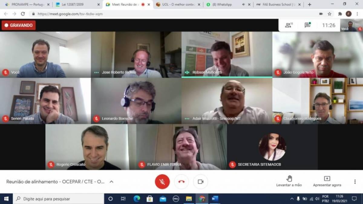 O Comitê Técnico de Executivos – CTE formado por executivos das entidades que compõem o Sistema OCB/MT e das Cooperativas filiadas, realizou reuniões virtuais de trabalho com dirigentes e técnicos do Sistema OCB Nacional, o Sindicato e Organização das Cooperativas do Estado do Paraná – OCEPAR, e o Sindicato e Organização das Cooperativas Brasileiras no Estado de Goiás (OCB/GO).